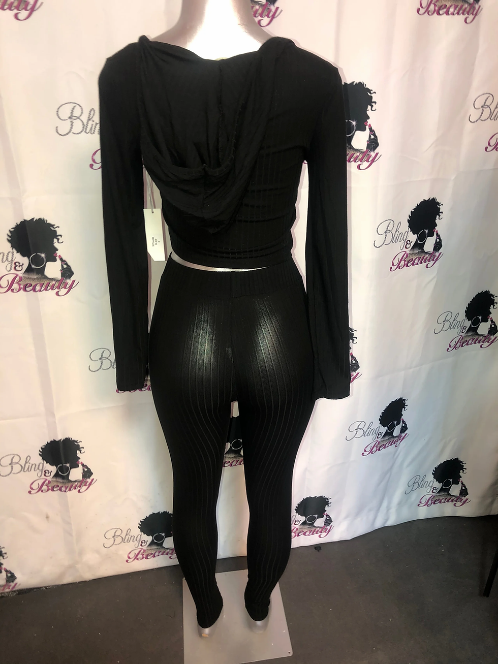 2pc Hoodied Ribbed Crop Top w/ Leggings